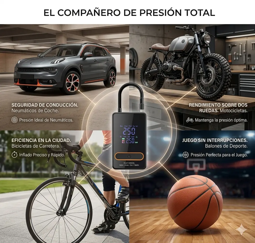 ¡Asegura un viaje tranquilo y sin preocupaciones con nuestro Compresor de Aire Digital 6000mah! Diseñado para brindar inflado rápido y preciso, este inflador digital es la solución perfecta para neumáticos de automóviles, motocicletas, bicicletas, globos o más. Descubre las características que hacen de este compresor tu compañero esencial en la carretera.