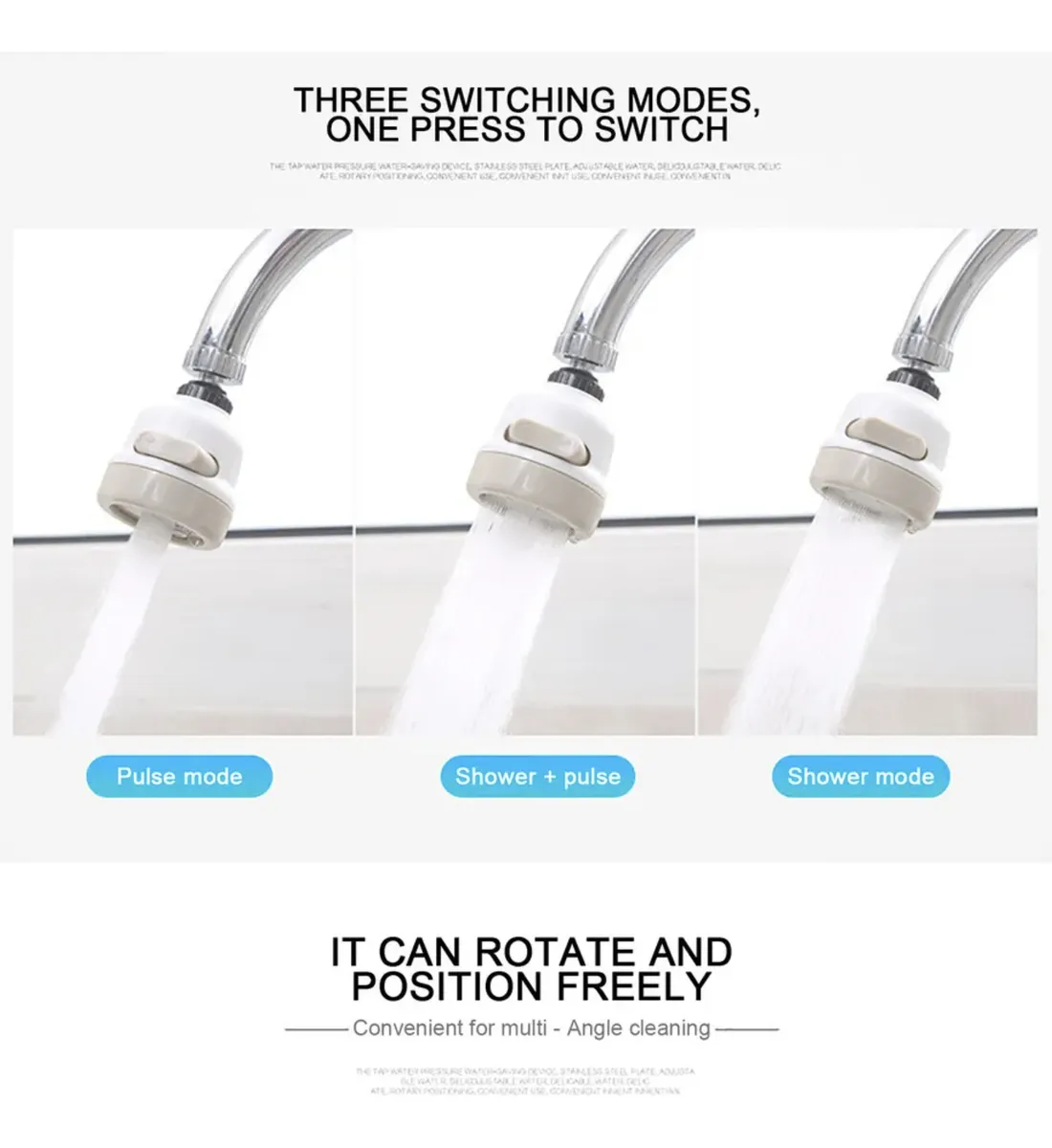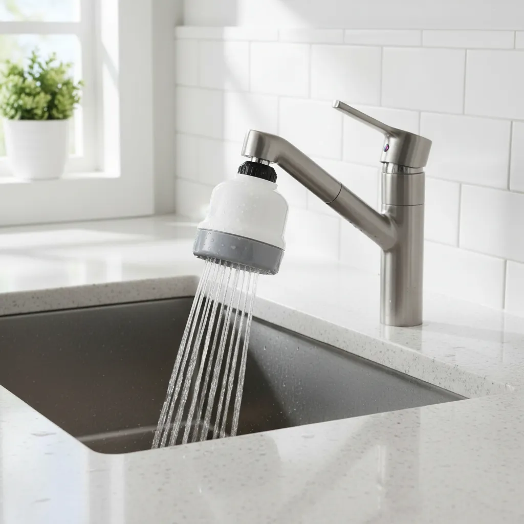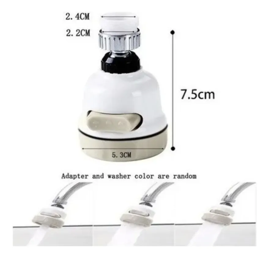 Adaptador para lavaplatos con rotación de 360 grados, diseñado para mejorar la funcionalidad de cualquier canilla. Se adapta fácilmente a distintos tipos de grifería y transforma la salida de agua en 3 funciones en 1, permitiendo mayor comodidad y eficiencia en el uso diario.
