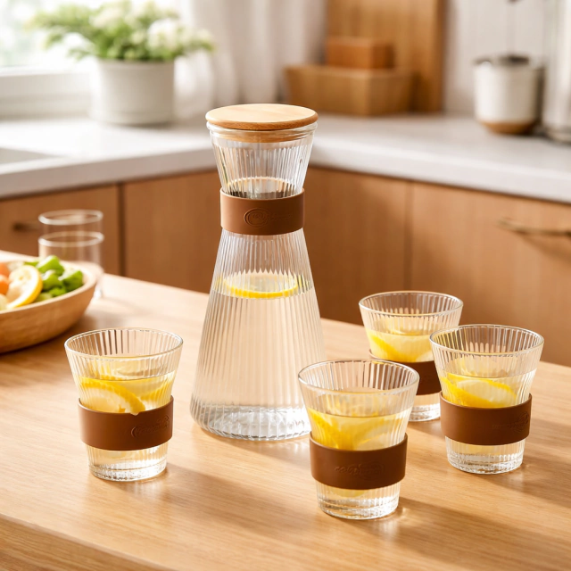 Servir bebidas nunca fue tan elegante. El Set Jarra + 5 Vasos es el complemento ideal para la mesa familiar, tertulia de amigos o cualquier ocasión especial.