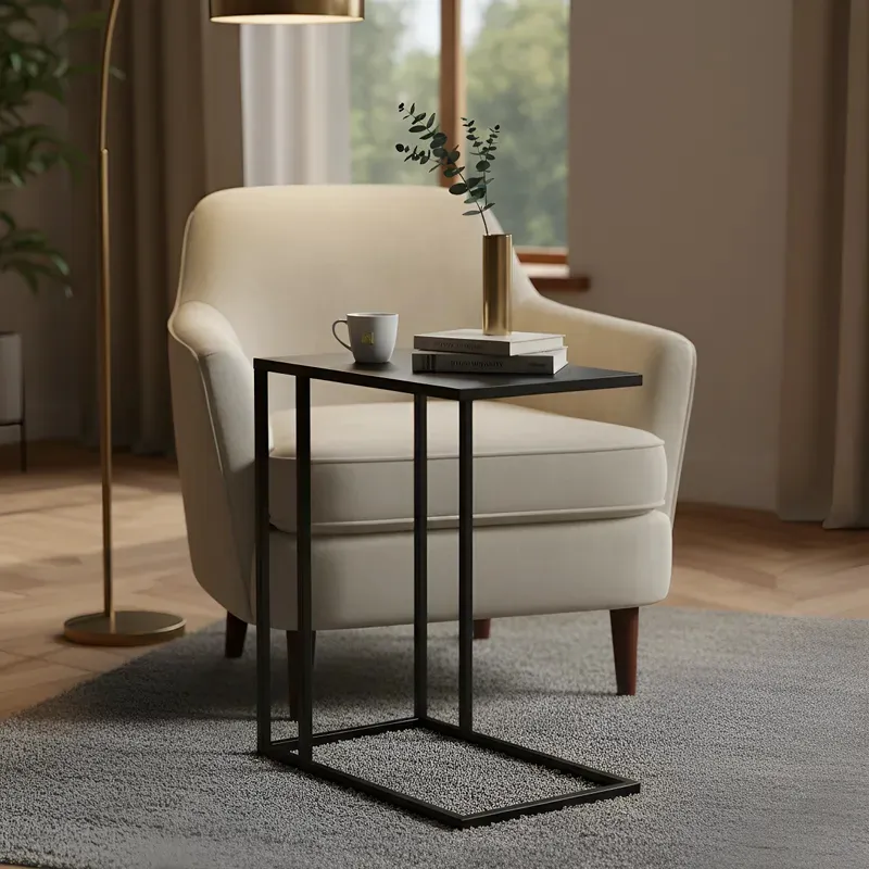 Práctica, resistente y versátil. Esta mesa de arrime es ideal para complementar espacios como el living, dormitorio, recibidor o pasillo. Su diseño moderno y su estructura metálica aseguran durabilidad y estilo.